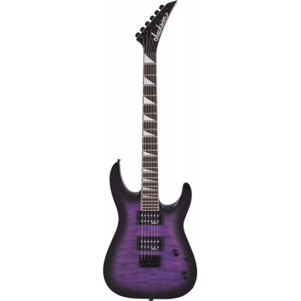 Crafted with a solid poplar body and a quilted maple arched top, the JS32Q delivers tonal resonance and visual appeal in equal measure. The bolt-on maple neck is reinforced with graphite and paired with a smooth amaranth fingerboard that features 24 jumbo frets and Jackson’s signature shark-fin inlays. The compound radius of the neck transitions from rounded to flatter as you move up the frets, offering effortless chording and precision leads. Add to this its hardtail string-through design for enhanced sustain, and you have an instrument built for performance.