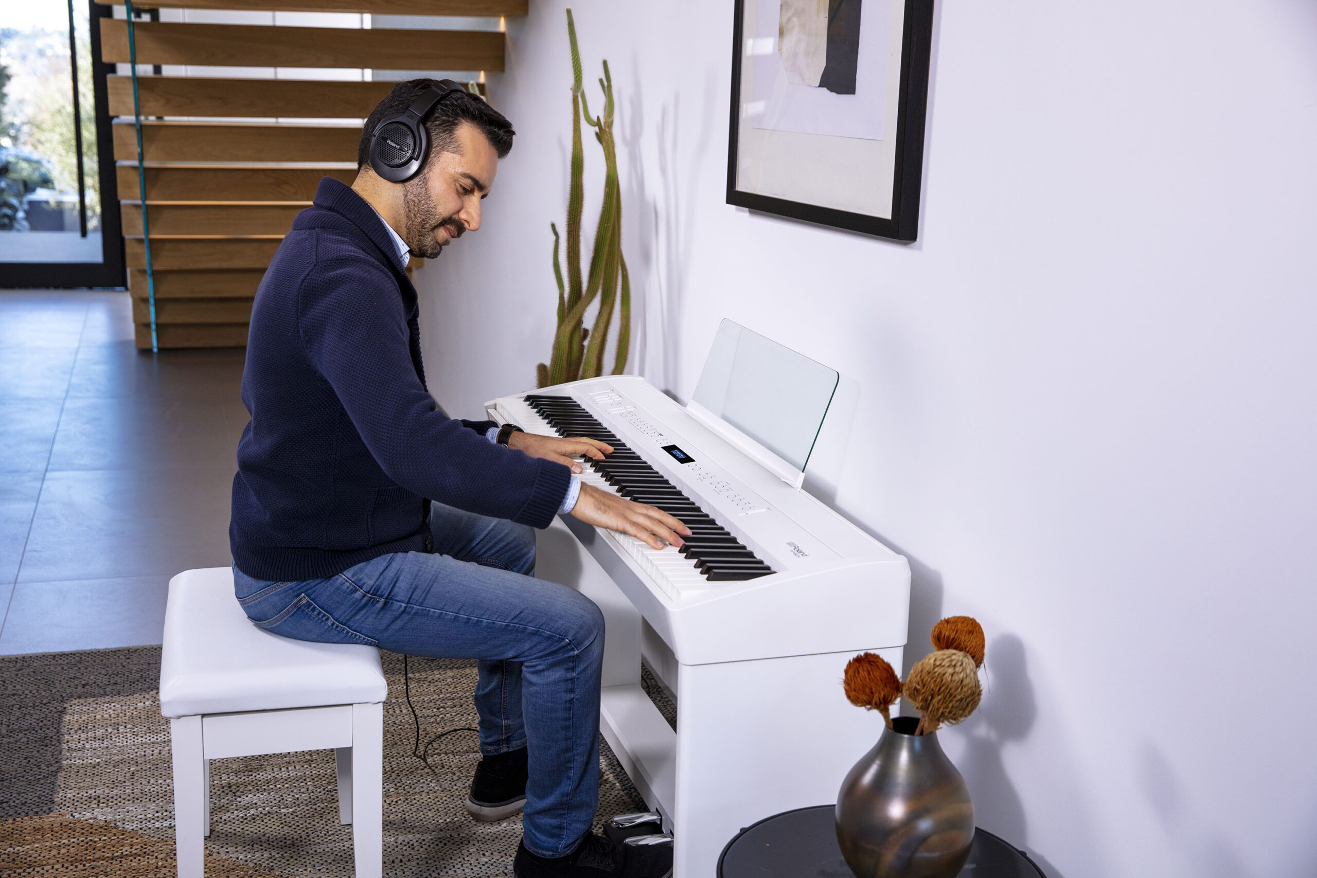 For UK tuition and school use, the FP-60X covers the essentials teachers ask for. You get a full 88 note keyboard, proper damper pedal control, a metronome and practice tools, plus dual headphone outputs for quiet lessons or shared practice. Twin Piano mode splits the keyboard into two equal ranges for teacher and pupil, while Bluetooth audio and MIDI support app based learning and play along practice without extra cables. Add the optional matching stand and triple pedal unit to create a neat home setup, or keep it portable for ensemble rehearsals and concerts. Robust build quality and flexible connections make it a long term, great value choice for learners progressing into confident performers.